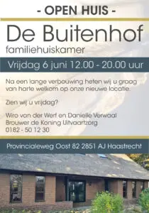 Wees welkom om op informele wijze kennis te maken met ons en onze mooie nieuwe plek.